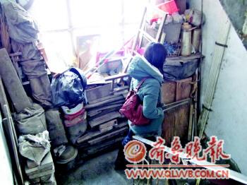| 楼道里堆放了很多杂物,只能容一人通过。 实习生 吕玮 摄 |