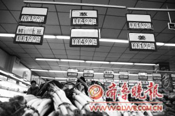 | 超市中大葱的售价已达每斤4元。 |