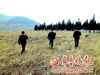 本报枣庄3月21日讯(记者 李淼 李泳君)19日,滕州公安在境内打死一只伤人野狼。在野狼被击毙的第二天,枣庄市市中区齐村镇的部分村民称,又看到了疑似狼的动物在村子附近活动。为确保村民安全,21日上午9点,齐村镇组织民警、村民等组成打狼队兵分两路上山搜寻狼的踪迹。 21日上午,记者来到了市中区齐村镇银庄村,银庄村三面环山,地势复杂崎岖,是狼比较喜欢出没的地形。10点30分左右,记者跟随一支打狼小分队上了山,开始寻狼。这支小分队由四人组成,都是齐村镇政府的工作人员,他们每人手里都拿着一根长约1米、比较粗的棍子。 其中一位队员曾宪伟告诉记者,他们现在几乎每天都要对山区进行搜查,“这里的山离第一次出现狼的山亭区北庄镇毛宅村只有30多里的路程,因此出现狼伤人事件后,我们就开始组织人员进行巡查。”一上午,打狼小分队搜查了北面、西北、西南等齐村镇境内的山,尤其是对树林、草丛等狼易隐藏的地方进行了细致的检查,但是没有发现狼的踪迹。 曾宪伟说,根据村子里老人的判断,此次齐村出现的狼应该不是野生狼。“这次出现的狼体形比较大,老人们说野生狼没有这么大的体形,一般比狼狗还要小。”根据目击者的描述,齐村出现的狼与滕州被击毙的伤人野狼颜色不同,滕州野狼是灰色的,但目击者称这次出现的狼颜色有些发白。 参与此次打狼行动的齐村镇派出所赵所长说,在17日得知银庄村出现狼之后,18日派出所就组织相关干警进行大面积、大范围的搜山寻狼,“打狼行动一直持续到现在。” “银庄村一带山体相连,草木较多,地势复杂,搜寻的面相对较广。由于天气比较干燥,搜查过程中并没有发现狼遗留的足迹,也没有发现狼的粪便。”据赵所长介绍,参加此次打狼行动的包括附近几个村的村民、公安干警以及政府工作人员,总人数达到了上百人。“关于狼的具体情况,现在还没有摸清。”