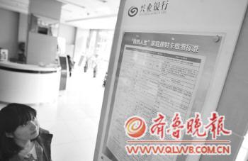 21日,在烟台南大街兴业银行,一位市民正在查看银行公示的各种服务收费细则。银监会2月9日发布《关于整治银行业金融机构不规范经营的通知》,要求3月底前各银行统一公布所有收费项目细则,兴业银行也早早地将各种服务收费标准细则张贴在醒目位置。本报记者 赵金阳 摄