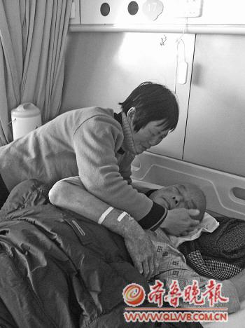 | 24日,卢先生的妻子在医院陪伴丈夫。 本报记者 郭静 摄 |