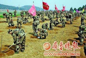 24日,在长清区,驻济某旅顺利完成植树任务。近日,济南军区支援驻地生态环境建设活动在长清展开,该部队出动1000余人利用一周时间,为驻地群众种植了5万株核桃树。