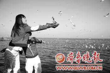 25日,在青岛海昌极地海洋世界附近的海域,工作人员正在给海鸟喂食。据介绍,青岛海昌极地海洋世界将于4月2日至4月4日邀请市民给海鸟喂食,时间是每天上午10时30分,希望借此挽留海鸟。 本报记者 杨宁 摄影报道