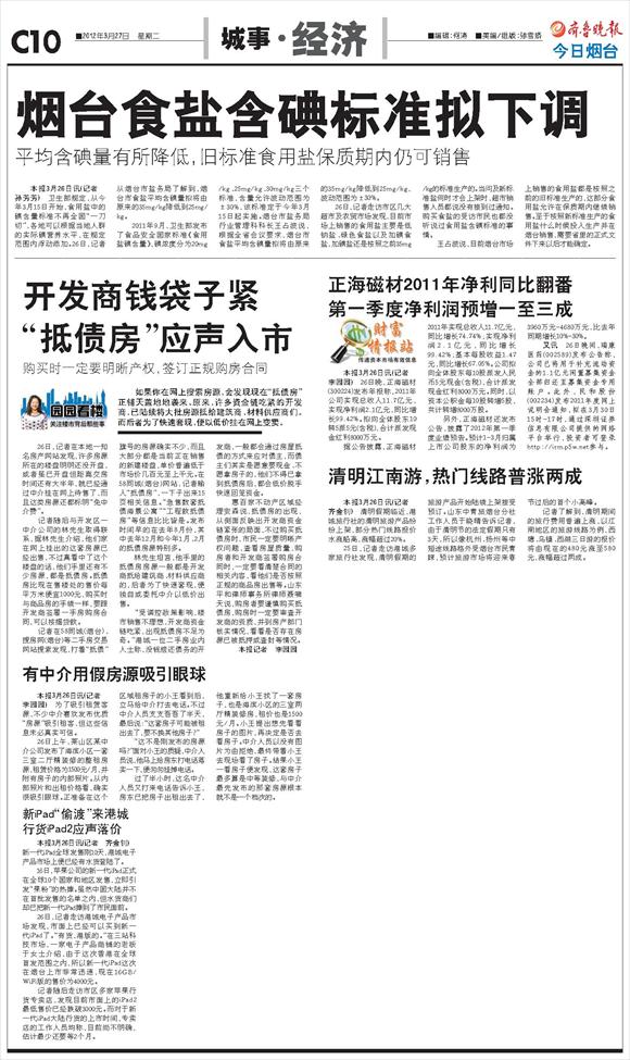 正海磁材2011年净利同比翻番第一季度净利润预增一至三成