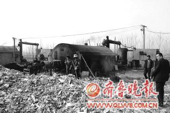 本报枣庄3月28日讯(记者 孔红星 马明 张冬梅) 在滕州市滨湖镇陈宏楼村东北方向的田间地头,有人专门收购塑料垃圾在此进行加工,最后炼制成“黑油”,对外销售。炼油发出的恶臭让附近村民深受其害。28日,这一非法炼油的黑窝点被查封。 27日中午,在当地居民的指引下,记者来到滨湖镇陈宏楼村东北方向一个偏远的田间,院子内有几间房子、堆着塑料垃圾和煤炭,此外还有一辆铲车和两台锅炉。四名中年妇女用工具摊晒着散发出发霉味道的塑料垃圾,一名满脸炭黑的男子不时地查看锅炉的情况。 在锅炉前,记者看到一名工作人员正忙着向炉膛里添加材料。在其中的一个锅炉旁边,摆放着8个大铁皮桶,其中有三四个桶内装满了“黑油”。工作人员杨某介绍说,这些油是塑料熔化后产生的,每隔一段时间就会把油从锅炉内放出来。交谈中记者了解到,每个大桶能装300斤左右的“黑油”,达到一定量后,工人会将桶内的油抽到旁边容量达30吨的大罐内。 记者以卖原料为名,找到一位姓杨的负责人。杨某表示,因塑料垃圾的成分不同,价格也有所区别,有的每吨几十元,好点的料每吨可以超过千元,他们每天可用30吨左右的塑料。 由于这个以塑料垃圾为原料的加工厂位于村庄附近,并且在田间地头、靠近河沟边,附近的居民对此非常不满。“这个加工厂是春节前才开始生产的,白天和晚上都加工,因处于村子的东北方向,冬季刮风时经常闻到刺鼻的味道。”附近村庄的居民表示,现在去田间干活时,也要忍受着一股股的臭味。 接到举报后,28日,滕州市工商局执法人员来到该加工厂进行调查。该厂归杜某所有,但对方一直没有露面。执法人员还发现,该厂没有经营许可证和营业执照,当场也没有人出示相关证件或手续。 执法人员查看了该工厂的生产设备以及工序,现场查封了相关设备,并下达了责令整改通知书。 当日下午,滨湖工商所相关负责人告诉记者,工厂负责人杜某下午4点左右已经到工商所接受调查,工商部门已经立案调查。