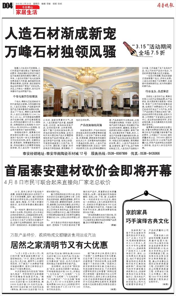 人造石材渐成新宠万峰石材独领风骚