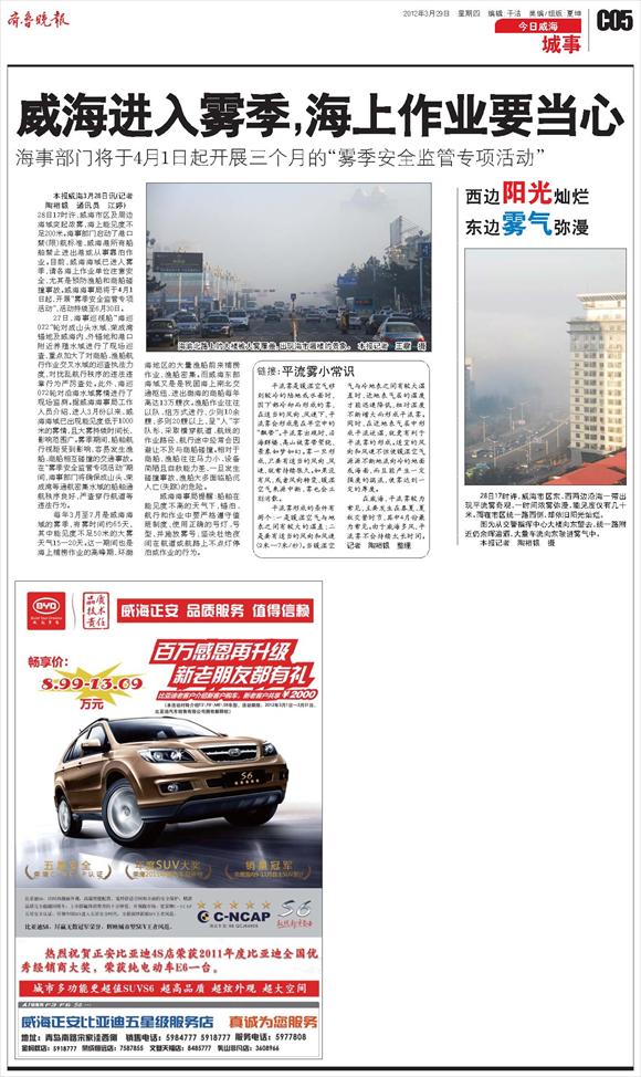 威海进入雾季,海上作业要当心