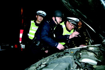 | 民警对车辆进行检查。 通讯员 张林山 摄 |