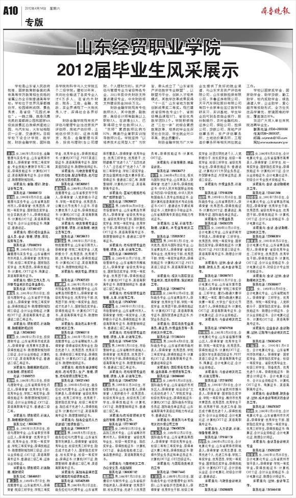山东经贸职业学院2012届毕业生风采展示
