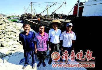 | “琼·琼海09099船”的4名船员在渔船前合影。新华社发 |