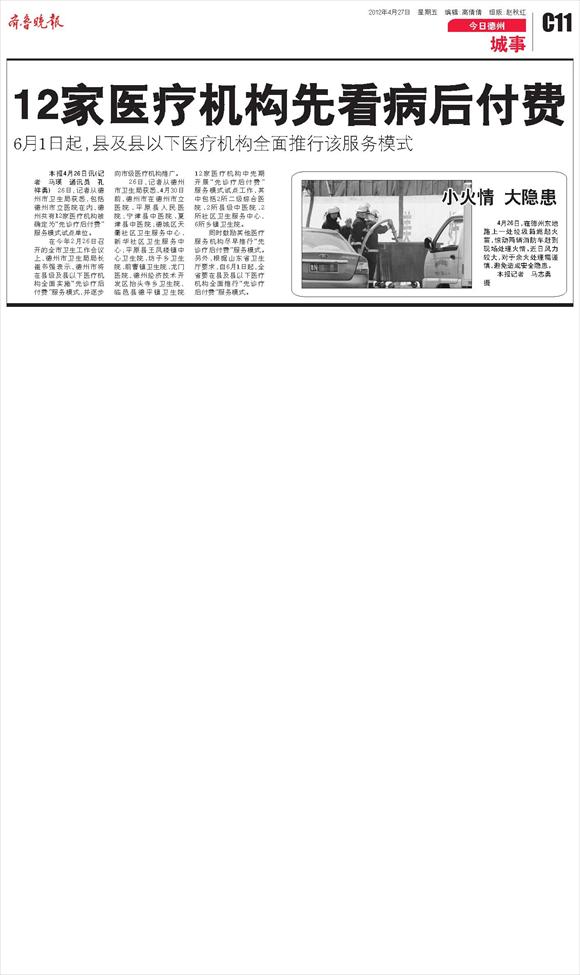 12家医疗机构先看病后付费