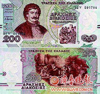 希腊中央银行为希腊银行。货币符号CRD,主币称德拉克马,辅币叫雷普塔,进位是1德拉克马等于100雷普塔。2001年1月,希腊正式加入欧元区,成为其第12个成员国,至此,希腊货币德拉克马与欧元正式挂钩,其汇率被确定为1(欧元):340.75(德拉克马)。