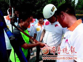 | 拓展训练教练在为比赛选手做准备 |