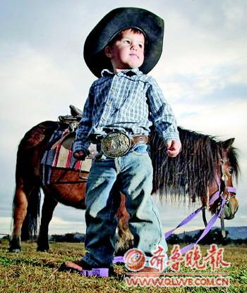 据新华社电 从外表看,澳大利亚2岁半男童罗伊斯·吉尔跟同龄人没什么两样,或许平时还要穿纸内裤。但在牛仔竞技场上,他的风采堪比成年人。正因罗伊斯的胆识和不俗表现,他获称“世界最年轻牛仔”。 英国《每日邮报》29日刊登的照片中,罗伊斯上身穿蓝白格子衬衣,下着牛仔裤,腰间皮带上的扣环比脸小不了多少,头戴黑色宽边牛仔帽,脚蹬皮靴,眼神坚定地望着远方。他的背后,6岁的小矮马“美宝莲”装备齐全。 另一组照片是竞技场上的罗伊斯与“美宝莲”。或是罗伊斯骑着“美宝莲”,双眼直视前方,半吐舌头,露出“决战”神情,或是他动作熟练地为“美宝莲”卸下马鞍、转身离开竞技场。 大约两周前,罗伊斯带领“美宝莲”参加了博德瑟特牛仔竞技赛。在18岁以下年龄组中,他与17岁的对手同场竞技。尽管没能取得名次,人们还是把“世界最年轻牛仔”称号送给了罗伊斯。 吉尔一家是马术竞技世家,到罗伊斯已是第七代。罗伊斯的父亲瑞安·吉尔说,罗伊斯的牛仔情结来自遗传。瑞安则获得过牛仔竞技赛中骑公牛比赛的冠军。