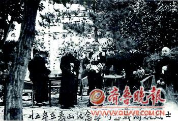 1936年,韩复榘(左二)、冯玉祥(右二)在泰山纪念栾州起义殉难烈士。.