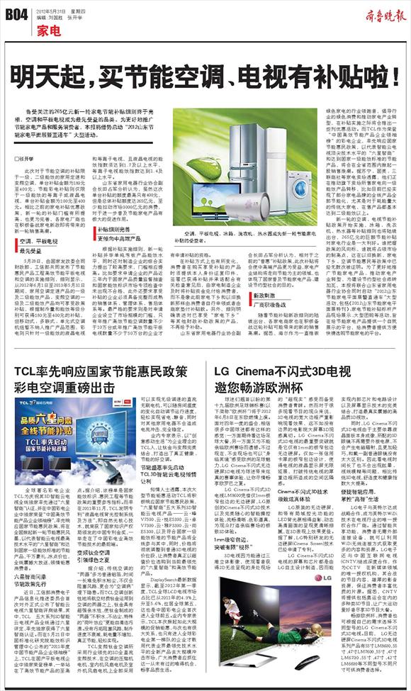 TCL率先响应国家节能惠民政策彩电空调重磅出击
