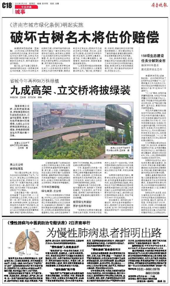 九成高架、立交桥将披绿装
