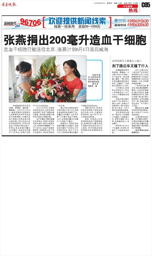 张燕捐出200毫升造血干细胞