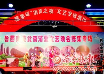 5月31日晚,鲁西南美食街消夏文艺晚会陈集专场在定陶县农贸城上演。夜幕还没有降临,路两旁已经摆满了各种美食小吃。开场舞《盛世欢歌》拉开了晚会的序幕,让人捧腹大笑的小品、美仑美奂的舞蹈,不时博得阵阵掌声,而两夹弦、大平调、坠子书等戏曲也齐聚一堂,让定陶的观众尝到了文化大餐的味道。