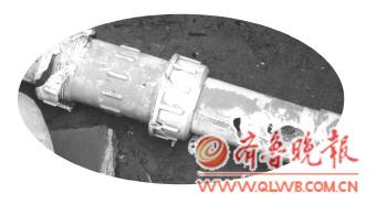 ▲该楼栋居民指给记者看被砸坏的总水管。本报记者 邢孟 摄