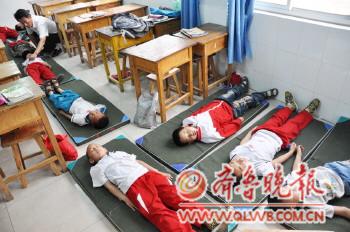 5月28日,秦皇台乡中心学校二年级的孩子们在新领的“午休护身垫”上休息。为解决留校儿童午休问题,滨州市滨城区秦皇台乡中心学校投资3万余元购买了450套体育用护身垫供孩子们午间休息使用,450名小学生从此告别回家带被子、中午趴桌子的午休做法。 李荣新 赵长征 张滨 摄影报道