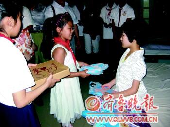 市中区光明路小学30余名师生跟随团市委、团区委、市区教育局领导到枣庄市残疾人康复中心看望12岁的“支架女孩”梁珍。少先队员们纷纷为送上心爱的礼物,有书包、文具、课外书、衣物、玩具等。