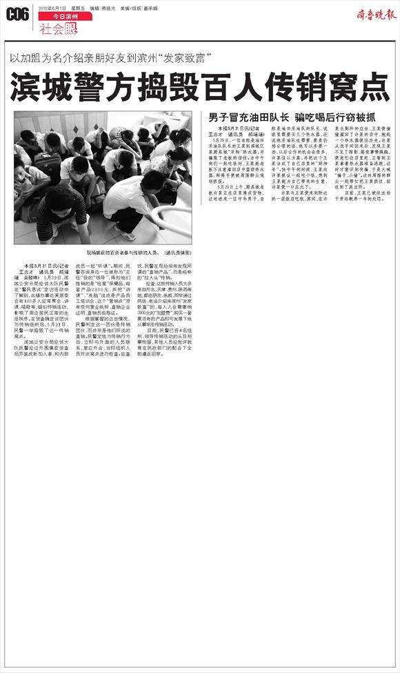 滨城警方捣毁百人传销窝点