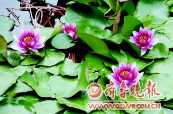 3日,在崂山西乌衣巷,朵朵睡莲在水面绽放。据了解,睡莲花期一般是5—9月,而目前开花的都是温带睡莲,热带睡莲还要1个月才能开花。 本报记者 张晓鹏 摄影报道