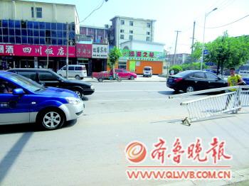 | 因市政施工,菏泽丹阳路与牡丹路交叉口西一段护栏被移除;工程完成,护栏却未恢复 |