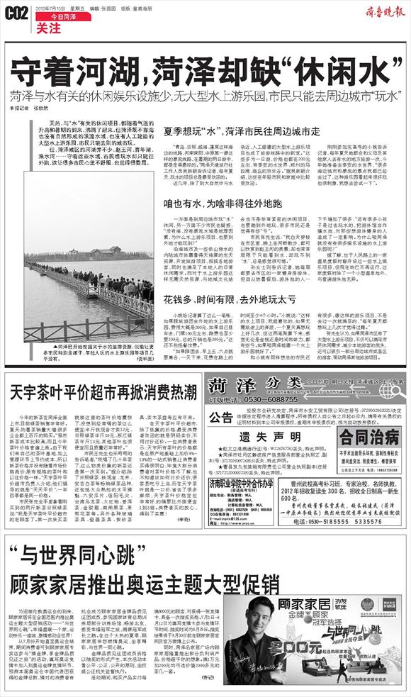 守着河湖,菏泽却缺“休闲水”