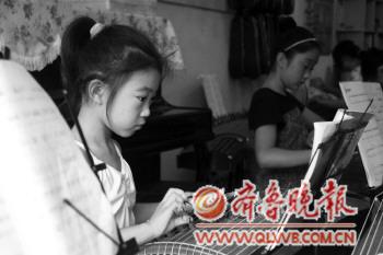 | 19日,在潍坊一家乐器培训班内,小学员们正在认真练习。