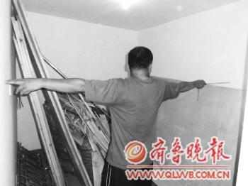 | 金柱·月亮湾小区A区业主陈先生正在测量面积“缩水”的地下室。