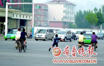 7月19日下午,湖滨中大道一处十字路口,一名儿童踩着滑板急速“滑”过,看了让人捏一把汗。