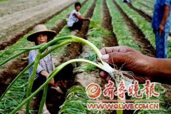 本报记者 孔红星 摄 |  | ◤多头葱苗,都被扔在了田地里。 本报记者 孔红星 摄 |