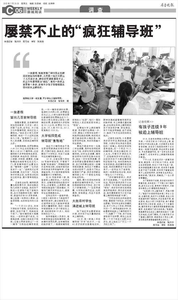 屡禁不止的“疯狂辅导班”本报记者 陈洋洋 实习生 李军 刘欣欣