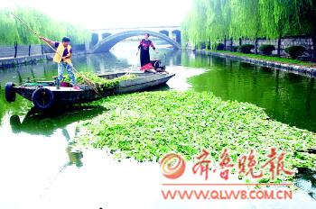 延伸阅读>> 河面大量水草 疑似“水葫芦” 专家:实为水鳖, 影响河道环境 24日上午,记者在城区老运河沿岸采访时,发现济安桥附近水面上,几名河道保洁员正在打捞一种水生植物,从远处望去,密密麻麻的绿叶极像水葫芦。 岸边几位市民称,这种水生植物是“葫芦苤子”,属于本地植物,可以起到净化水质的作用。他们并不赞同保洁员清理这些植物。“这些植物的繁殖速度很快,几乎每隔一两天便能打捞一船。”保洁员化敬英告诉记者,这种植物很常见,自己在微山湖区生活的时候就经常见到,“河里如果长满这些植物,水面上根本过不去船,很容易缠住船桨。”化敬英称,到了冬天植物就会烂掉,也会影响到河道的水环境,所以必须及时清理。 “这种水生植物名叫水鳖,也被称为马尿花,在全国大部分地区都有分布。”济宁市渔业局技术服务站一位负责人告诉记者,水鳖常用作园林植物培养,但在河道中如果大面积繁殖的话,会限制水体的流动,水体没有阳光照射就变得发臭,使水体中的溶氧量减少,抑制浮游生物的生长,破坏河道生态环境。 (记者 刘守善 实习生 张颖)