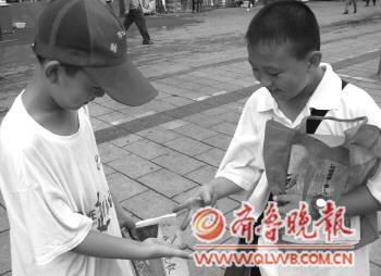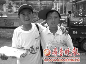 火车站广场因为客流大,成为了小报童们首选的卖报之地,不可避免的造成了很多选手“抢生意”,而岳希骋和季振琦却用一种有趣的方式让俩人之间的竞争增进了友谊。 “石头剪刀布,好,我又赢了, 我先卖”,10岁的岳希骋高兴地抱着报纸跑向读者,卖出报纸后,俩人又一起寻找着下一个营销目标。“我一上午老是赢,很快就会卖光了,等我卖完再帮他卖”,而一旁的季振琦则一脸不服气的说:“我这是诚心让着你呢,要不然我的早就卖完了。” 两个小伙伴早上都是领了40份报纸,两人一起约定,每天在火车站广场碰面,“我们俩就是一起卖报的时候认识的,天天用石头剪刀布的方法卖报,从来不抢,有时候他上午要去武术班,我上午就会剩下几份,下午等他来了再一起卖”,季振琦告诉记者,看到很多小选手争着抢一个客户,最后也交不到朋友,俩人就一起“发明”了这个小方法,既能开开心心的卖报,还能交到朋友,每天卖报的时间里都会充满欢笑。 一位买报纸的读者看到两个小伙伴在石头剪刀布分胜负,笑着说,“你们两个太有意思了,我能跟你们来一把不,要是我赢了就给我打个五折,输了我就原价买你们的”。“不行不行,我们可是有原则的,我们可以带你一起玩,但是卖报是不能打折的。”最后,这位读者从两个人手中各买了一份。“这俩小家伙,不光给我们送来了新闻,还带来了不少欢笑,多买一份报纸换个开心,值得!” 当记者问俩人赚了钱准备怎么花时,两个小伙伴齐声说要捐给受灾的小朋友,“我们从今天的报纸上看到北京下暴雨,肯定有很多小朋友也受灾了,虽然我们赚的不多,但是希望能帮到他们,也能跟他们成为好朋友,要是能拿到奖金,就全捐了”,季振琦很认真的说,“我们参加营销秀不是为赚钱,只是想锻炼下自己,多认识点好朋友,无论如何都是友谊第一”。 本报见习记者 李晓东