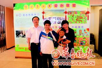 | ◤2012年4月29日,星海楼酒·江苏会馆开业庆典仪式。(图片由江苏商会提供) |  | 王刚(左一)会长和夫人与捐助的2名学生合影。(图片由被采访者提供) |