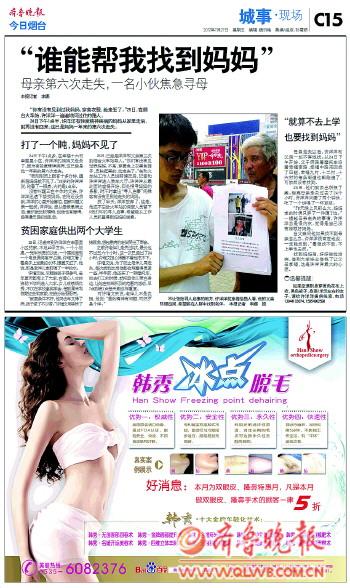 | 本报关于走失母亲的相关报道。 |