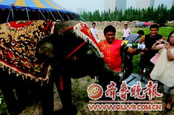 大象喝啤酒。 (资料片)