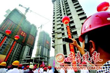 | ◥8月30日,位于小清河南岸的廉租房清河新居三栋楼封顶。 本报记者 王媛 摄 |