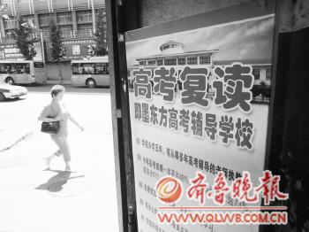 调查>> 未被理想学校录取,复读生多是高分落榜生 记者了解到,尽管复读生总体人数减少,但参加补习的多半都过了二本线,个别甚至达到600分以上。 张志刚说,报名复读学校主要有几类学生,一部分是填报志愿掉空里了,还有一部分学生被大学录取后,开学后觉得大学的环境不理想就申请退学,选择复读。 “600分以上的复读生很多是因为填志愿没填好,不想去一般的学校。”青岛天山实验中学(青岛58中分校)校长张民说。天山实验中学是市区一所接收复读生的民办学校。最近5年来,这所学校成了不想出远门复读考生的首选学校之一。据介绍,今年该校两个复读班招生人数近70人。其中,600分以上的有三四个,最高的理科复读生,高考分达630分。“在二本线上的就更多了。”张民说,今年有不少家长得知公办学校要在8月撤出,今后到哪儿都是民办,这使得一些家长倾向选择市区的民办补习学校。 张民称,学校招收的复读生一般都在450分以上。如果碰到高考成绩在400分以下的考生,他们会尽量劝说考生选择一所不错的专科或高职院校,而不要选择复读这条路。因为400分复读,提升的空间不是很大。 问题>> 民校打“公办老师”旗号招生 教育局称属违规 随着近年来复读生生源减少,公办补习学校完全撤出并没有给民办补习学校带来春天。不少民办学生为争夺生源,还打着公办重点高中老师教书的旗号。 胶南此前曾有两所公办高考补习学校,分别是胶南第一、第二补习学校,其中胶南第一补习学校在2010年把教学点搬到了青岛明天中学,更名为胶南市高考补习学校,民营性质。4日下午,记者以应届高中毕业生的身份致电胶南市高考补习学校。该校工作人员称,现在还可以报名,教课老师是胶南当地优秀的公办学校的老师。 民办补习学校有公办学校老师教课?4日下午,市教育局基教处相关负责人回应,这是绝对不允许的,属于违规。这位负责人说,其实公办补习学校已经完全撤出来了,民办学校或许是为了招生而打这个旗号。 这位负责人介绍,公办补习学校的撤出是有一个过程的。过去几年青岛每年选择复读的高考生人数都不少,为满足需求,社会上建立了大量专门针对高考补习的民办机构。2008年以前,岛城大量的复读生选择到郊区高中复读。2008年公办高中复读禁令下达后,市教育局公布了32家有招收复读生资格的学校名单,其中,22家属于社会民办培训机构,10家属于由各区教体局利用闲置教室和师资所举办的公办复读学校。 “市场上现在还有一部分复读的需求,但这部分需求由民办学校来满足即可。”基教处负责人说,现在公办补习高中已经实质由民办接管,公办教师和资源都不允许参与民办补习学校。若违反规定,相关部门要查处。