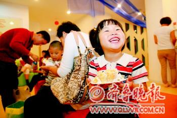 9月27日,是齐鲁晚报服务烟台5周年纪念日。经过前期报名,本报征集到20名2007-2011年9月27日出生的小读者,一起庆祝这个难忘的日子。4岁的孙家玥刚吃了一口美味的生日蛋糕,就开心地笑起来。 本报记者 赵金阳 摄