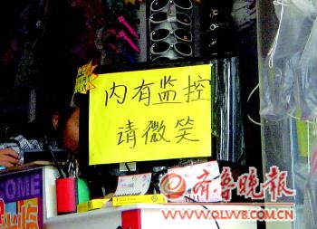 自述:一家小商店的提示:“内有监控,请微笑”。