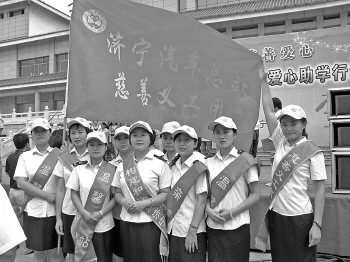 济宁汽车总站慈善义工团于2008年12月成立,由济宁市慈善总会正式授旗。济宁汽车总站慈善义工团以总站广大团员青年为主要成员,目前拥有义工50人。成立以来多次参与社会各项义工活动,利用业余时间组织团员走进社区、社会福利院、敬老院、聋童学校等,为孤寡老人、贫困儿童、留守儿童等困难弱势群体送温暖、献爱心,积极展示了汽车总站服务窗口的新形象。 本报记者 晋森