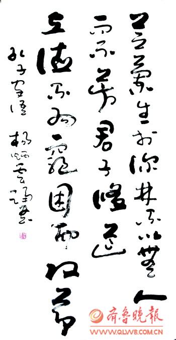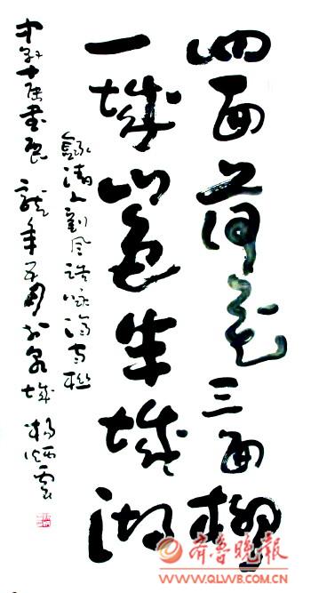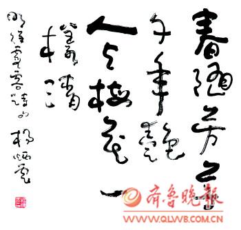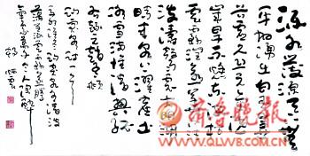 不是流于表面形式的习惯性的“写”,而是思想情怀的真挚表达,杨炳云先生赋予笔墨以丰富的情感,他让思想如流水,在笔尖成诗,墨韵过处,一如他坦露的心迹。 杨炳云的书法作品传统根基深厚,风格变化多样。他的草书宗法二王,以形带神,形神互蕴,又不断创新,形成自成体系的书法语言。他用笔恣意纵横,看似率性而为,却在一种笔墨韵律的畅达表述中,俯仰顿挫,传情达意常是在一气呵成中完成。他在书法创作过程中追求通篇作品结构、布局的幻化多变,颇有前人风骨。他创作的行草作品以帖学为主,入法晋唐帖学和章草法度,不囿于成法,艺术个性独立。其创作的章草书法作品有着浓郁的文人气息,篆隶追踪汉魏原碑版,用笔遒劲极富感染力。 杨炳云品性高古,为人谦和,有着淡泊的心境和平和的心态。他喜欢融入书法世界的感觉,静心于斗室,寄情于古典诗词,让自己的情怀徜徉在古人营造的境界里。如李清照的词,他在创作时,常是由感而发,用多变的笔触与墨色铺展词人的情怀,他以笔墨的墨色变化及气息变化来体现词人哀婉、一唱三叹的复杂情怀,将词人瞬间的心绪纤毫毕现地完美呈现出来。如《声声慢》、《如梦令》等词的创作,字体结构多变,用笔一波三折,或长或短,或平正或欹斜,皆随字形和性情而定,行字错落跌宕,疏密有度,将词人的心境与自我的心境融合在一起,抒情写意浑然天成,抒写出别有一番韵味的柔软的美的境界来。 杨炳云治学严谨,每创作到一个阶段,他都会静下心来,细细审视,寻找不足,并反复研究、揣摩古人的作品,时时在传统中汲取营养,以年轻的姿态渴求、问鼎在艺术的天地间。(王家莉)