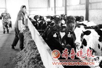 一奶牛饲养场内工人为奶牛准备饲料。(资料片) 本报记者 任小杰 摄 |