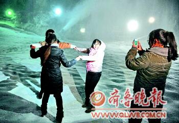 本报12月4日讯(见习记者 许建立) 由于南部山区气温达到零度以下,符合造雪所需要的条件,金象山滑雪场于3日夜间开始造雪。 3日晚9点半,记者来到金象山滑雪场。四台造雪机正在对雪道下方一处约400平方米的正方形区域进行喷雪。从机器中喷出的水,在空中50米处迅速凝结成雪粒,撒在地面上,将草皮覆盖住。记者抓起一把雪,感觉手里立刻冰凉了许多,细微的雪粒如同盐粒一样洁白。 在造雪现场,记者手中的温度计显示为零下7度,符合造雪条件。金象山滑雪场从3日下午6点开始,便发动造雪机器。据滑雪场工作人员介绍,在气温条件允许的情况下,这四台机器可以一直工作到4日上午9点左右。此后的几天晚上,只要条件允许都要进行造雪,直到将整个雪场铺满。 据了解,滑雪场现有四台造雪机同时工作,八名工人轮流值班看守,但若是想移动一台造雪机,则需要八名工人一起。守在造雪机旁边的工作人员周成彬告诉记者,能够滑雪的厚度是30厘米,差不多就是得达到小腿肚的位置,等造雪工作全部完成后,最厚的地方可达到80厘米。记者现场测量了一下,目前雪道上的雪的厚度约10厘米。有关负责人表示,如不出意外的话,滑雪场将在12月8日(本周六)开门迎客。