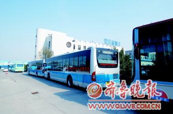 | 6日,公交车排队等待年检。 本报记者 董钊 通讯员 刘新华 摄 |
