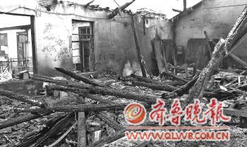 | 屋子里的木头都被烧成了焦炭。 本报记者 苑菲菲 摄